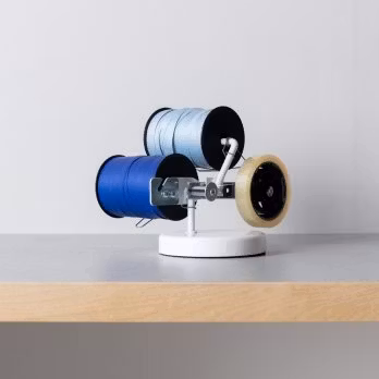 Den är utrustad med en bromsfjädrar på bandrullarna och ett gummihalkskydd för extra stabilitet. Dessutom finns lösa delar som reservdelar för långvarig användning.