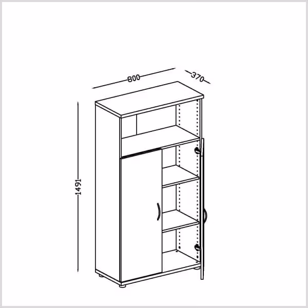 - Utrustad med 4 hyllplan varav 3 hyllplan är justerbara i höjd.